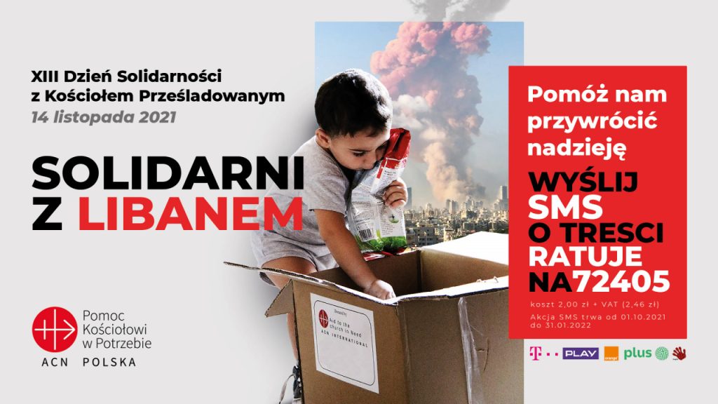XIII Dzień Solidarności z Kościołem Prześladowanym to okazja, by przyjść z pomocą chrześcijanom w Libanie. Poprzez dar modlitwy w ich intencji wypełnijmy najważniejsze przykazanie miłości Boga i bliźniego. Chrześcijanie w Libanie każdego dnia zmagają się z wieloma przeciwnościami. Trwający od kilkunastu miesięcy kryzys ekonomiczny pogłębiony wybuchem w bejruckim porcie w sierpniu ubiegłego roku zabiera nadzieję kolejnym rodzinom. Brak prądu, leków, pracy, żywności i środków higienicznych to lista, która każdego dnia prowadzi do wielu tragedii. Zachęcamy do włączenia się w działalność Papieskiego Stowarzyszenia Pomoc Kościołowi w Potrzebie. Dzisiaj jej głównym celem jest pomóc przetrwać ten okrutny czas naszym libańskim braciom i siostrom w wierze.